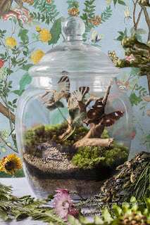 Cao Fei(曹斐),曾經參與Gucci在去年十月於上海舉辦的No Longer / Not Yet(已然 / 未然)展,將一雙Tian「天」系列的拖鞋(她的自創作品)置於破敗的城市一隅,對比呈現著數百年前的古舊花鳥藝術與現今工業化的中國。同時,多媒體藝術家,Cheng Ran(程然),以滿天飛旋的Tian「天」為背景,呈現一隻陰鬱小貓。遊居於韓國與澳洲的 Jaesuk Kim(金在錫),強調了Tian「天」的慧黠設計,以他的繪圖創作呈現女性慵懶閒適躺臥於品牌設計的Padlock bag鎖釦鍊帶包款上。Charles Lo(查爾斯.羅)更深入探討主題,玻璃容器中的景觀採用真花與樹枝,猶如舞台設計背景。印尼的Fajar P. Domingo(法佳.丕.多敏戈)切割Tian「天」印花的原始設計、拼貼出賦有新意的意象,藉由黑白女性影像,將圖騰釋放於開闊的天際,成為世界的布幕。Yoshito Hasaka的即興創作則是一種設計的脫逃,將東京的所有建築都轉化為花卉瀑布。
